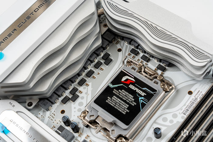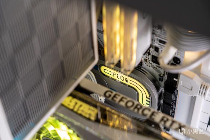 这次使用的主板是七彩虹最新款的iGame Z790D5 FLOW V20 DDR5主板,采用多种高规格特性如18+1+1超强供电,90A旗舰级DrMOS,7800+MHz(OC),4xPCIE4.0X4的M.2,支持30W PD快充的前置TYPE-C口、8层2盎司铜PCB等等,又采用纯白PCB的设计正好迎合本次白色主题。使用的散热器是阿萨辛4,双向恒定热平衡热管的7热管与双塔双扇设计,两把风扇都使用了三相六级PWM电机和FDB液态轴承,配合绝美的外形与280W解热能力,压制14700K也不在话下,配合七彩虹主板降降电压则使用非常安逸了。