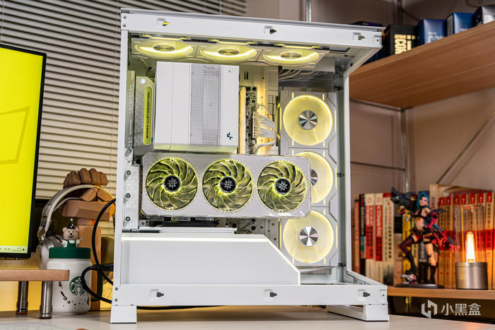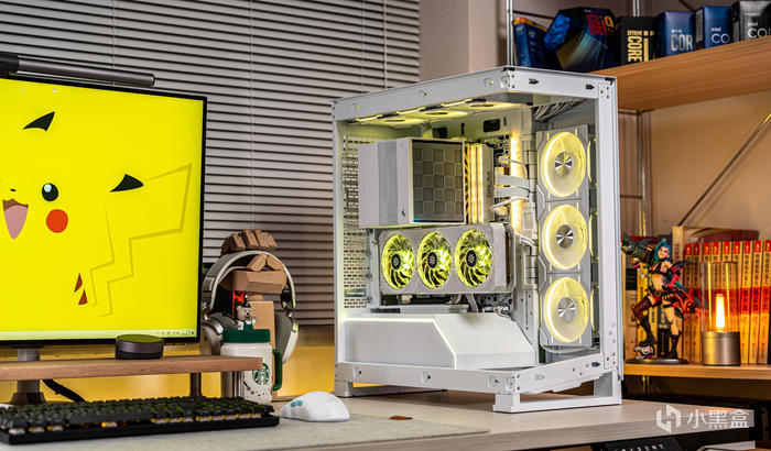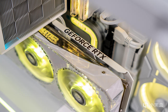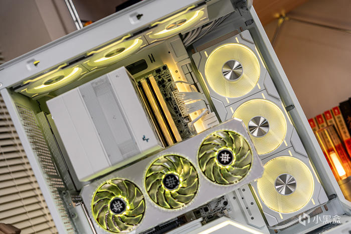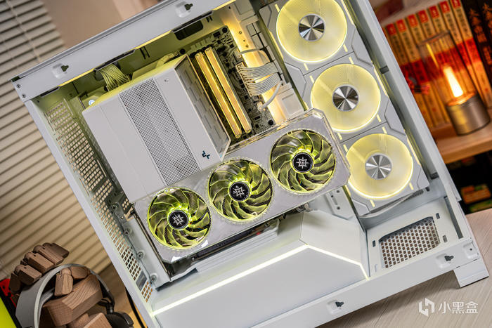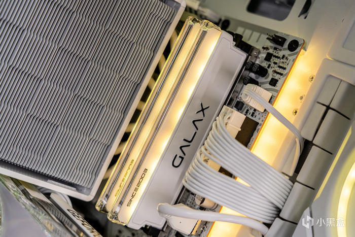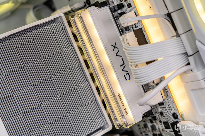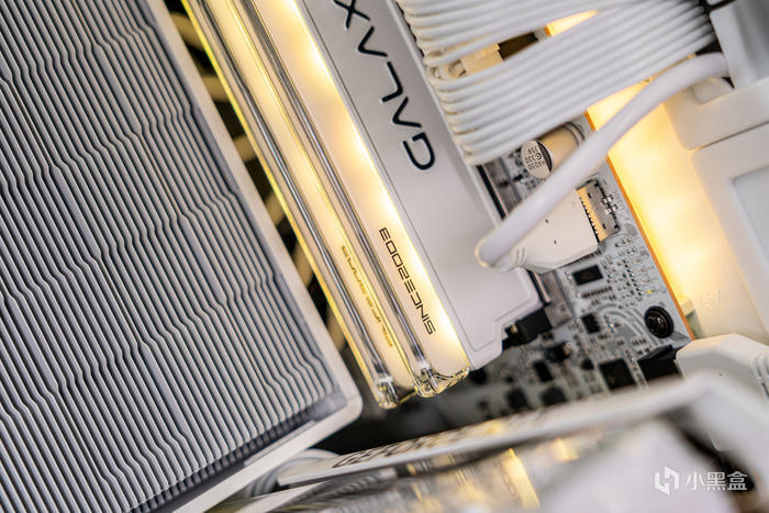 纯白定制的HOF OF FAME 曲镜白泳散热器,全铝CNC工艺和曲面设计,不仅散热优秀且马甲曲线灵动感十足