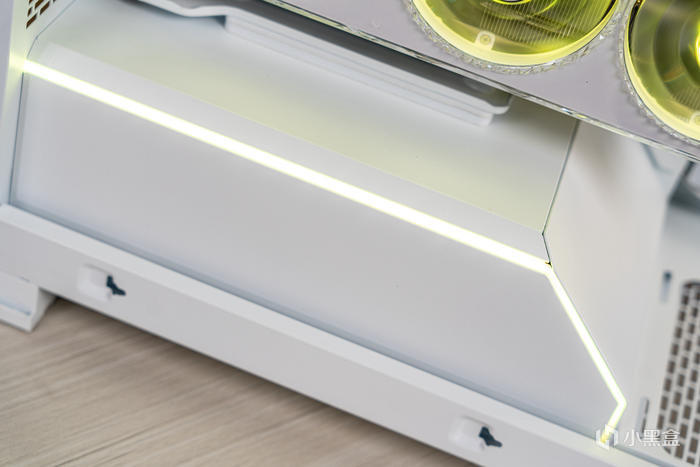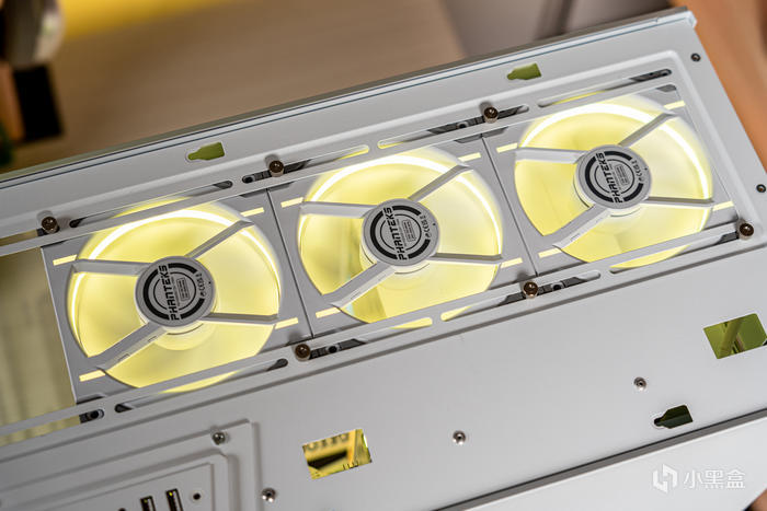 NV5除了顶部的360冷排位和侧边360冷排风扇位,还有底部1个风扇位和尾部1个风扇位,在本次安装中未进行满配安装,而是安装顶部3把正叶扇和侧边3把反叶扇,都是白色款的风扇