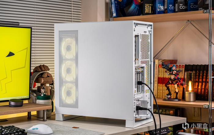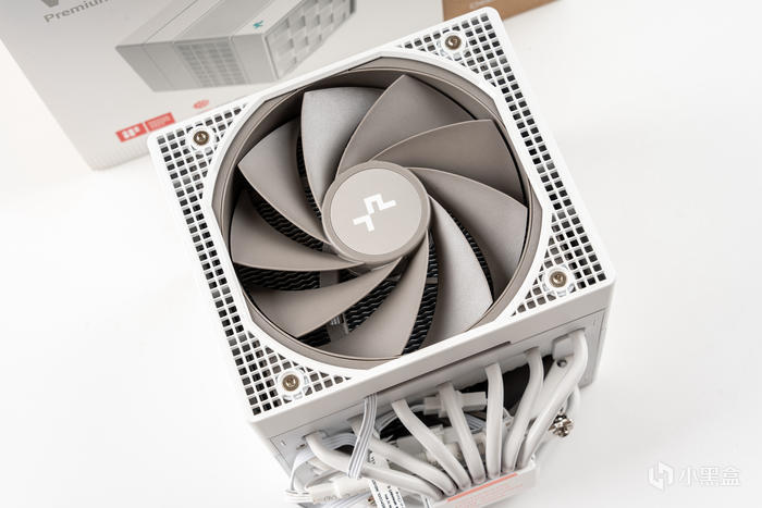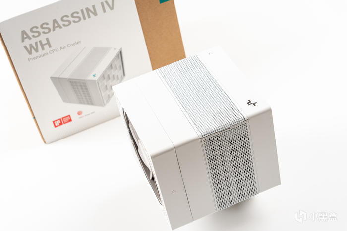 本次白色主题使用的散热是来自九州风神的阿萨辛4风冷散热器,它使用了7热管双塔双扇设计,具有双向恒定热平衡热管与280W解热能力,两把风扇都使用了三相六级PWM电机和FDB液态轴承,并且为纯白散热本体设计,风扇也是淡灰浅色