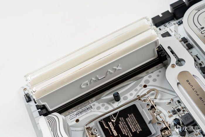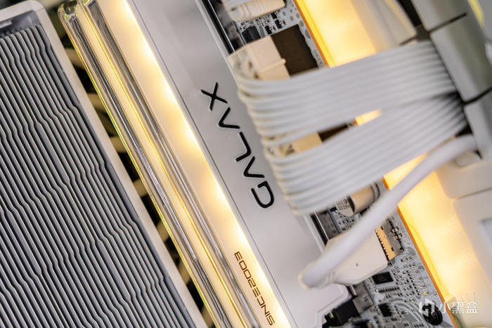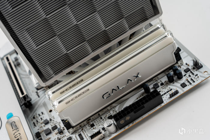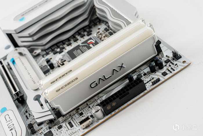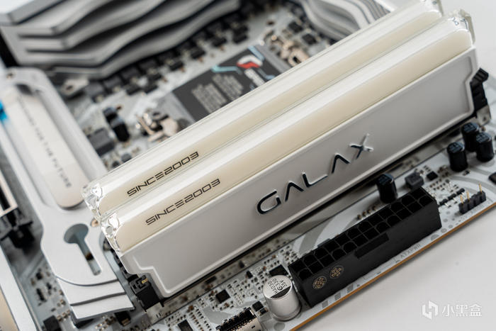 内存顶部还有since2003的标志,而整体采用了纯白散热马甲及电泳工艺处理,中间的GALAX 的logo则以银色浮雕打造,马甲边框配合多道工艺锻压
