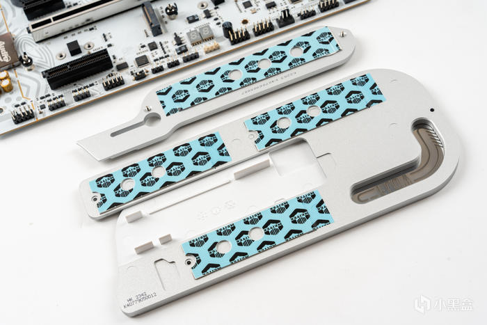 两块散热片支持4条M.2散热,中间还有一根PCIE插槽防尘盖