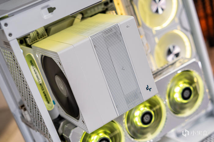 整个散热器侧面也是与磁吸顶盖一致的网孔面板设计,依然为正方体的设计面