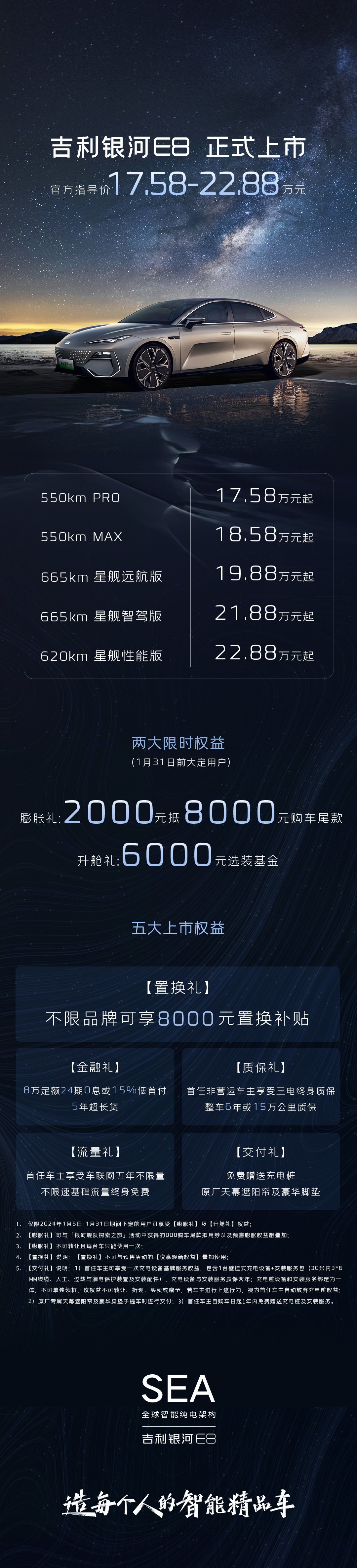 作为吉利银河E8车型的独家合作伙伴,京东方为这款电动轿车量身定制了45英寸8K无界智慧屏。这款全新的国产电动轿车将于2024年1月5日正式上市,共推出5款车型,售价区间为17.58-22.88万元。