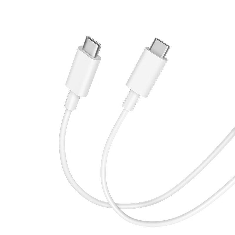 小米数据线采用家族设计语言,经典白 + 灰配色,长度为 1 米,配备 USB-C to USB-C 接口,插拔次数 10000+,±90° 弯折次数 10000+,抗拉强度 100N+。