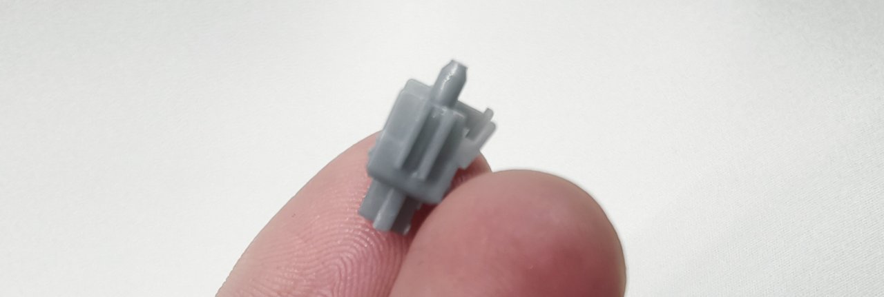 打开后你就可以看到轴体的本体了,这十颗轴体都是灰色的,他的上盖呢是透明的,上面印着GATERON,轴心柱与底壳方面都是灰色的,轴心柱为pom材质,上盖为PC材质。