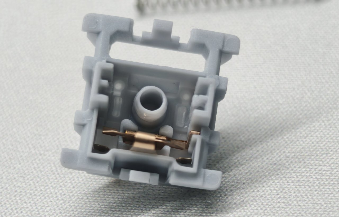 他这款静音轴是没有导光柱,这其实并没有什么,但是最让我感兴趣的一点是他也没有预留导光柱的位置,而是给他封上,并且做成了磨砂的透明状态,整体的导光性能也还算不错。让一些较懒的人也能到手即用