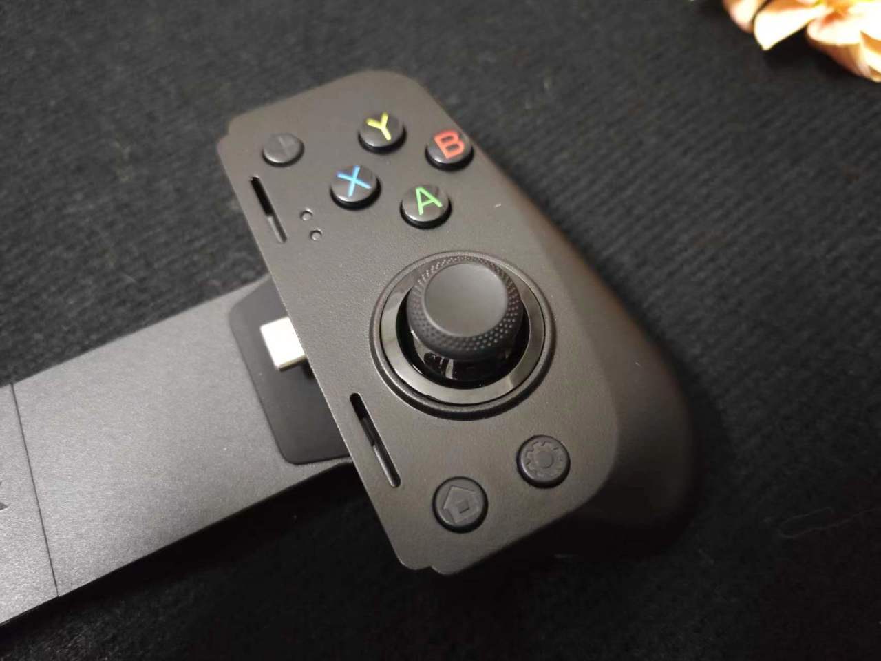 M10手柄的右侧,ABXY按键也是用的导电胶按键,手感很棒,右摇杆与左摇杆一致,也是霍尔大摇杆。右侧布局也有3个功能键:Start键(上)、Home键(下左)、设置键(下右)。按键依旧是微动按键。手感不错。而且易速马M10手柄的右侧下方还有可以供手机充电的C口,位置设计得很合理,打游戏的时候不会挡手。