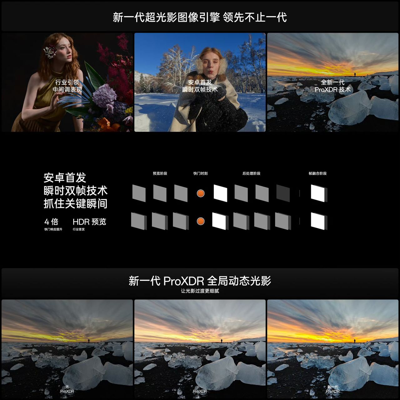 ◆ 后置:50MP 主摄(索尼 LYT900,1",OIS,1G+7P)+ 50MP 超广角(索尼 LYT600,1/2")+50MP 3 倍潜望长焦(索尼 IMX890,1/1.56",悬浮棱镜防抖,最近对焦距离 25cm)+50MP 6 倍潜望长焦(索尼 IMX858,1/2.5",最近对焦距离 35mm),专业哈苏人像、哈苏大师模式,支持全焦段 4K 杜比视界视频;