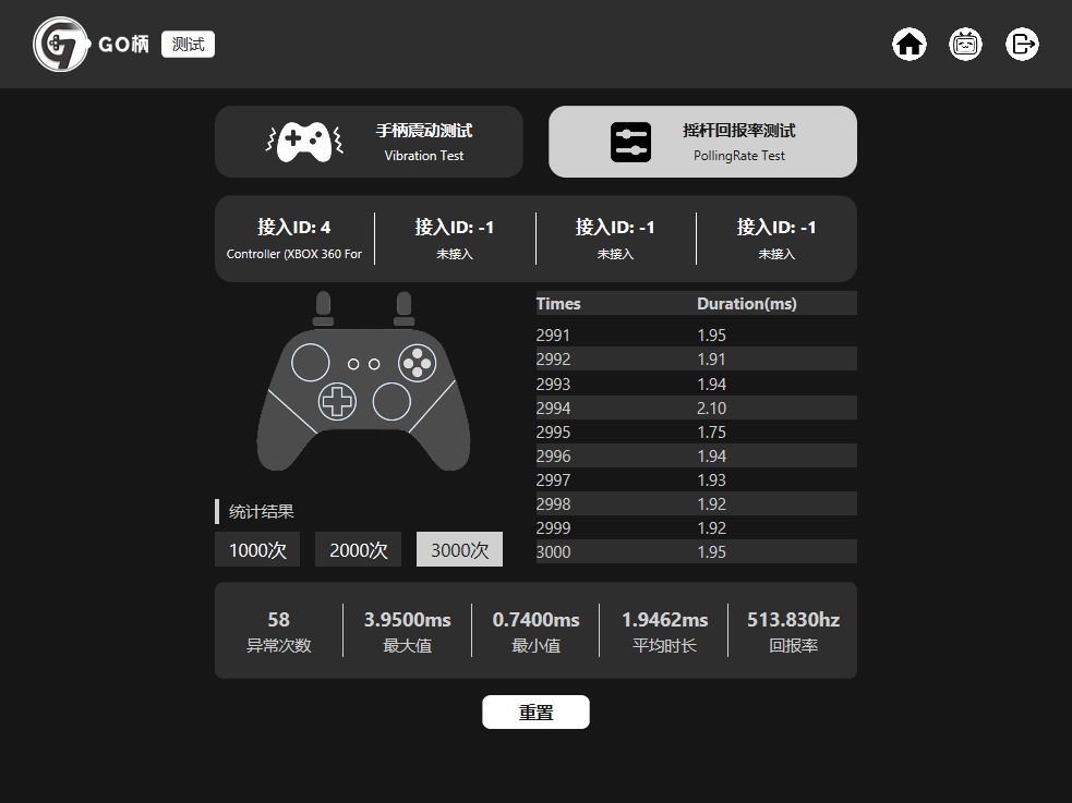 在搖桿畫圓錯誤率的測試中,也可以看到他亮眼的表現,左右搖桿的成績都非常棒,錯誤率都控制在2.8%,這在百元內的手柄中,成績是非常亮眼的!