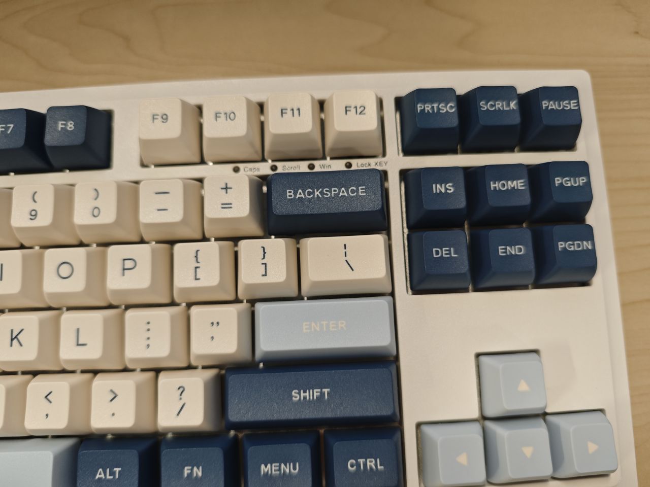 键盘尺寸为:367mm*139mm*40.3mm,87键,没有数字区。80%配列,缩减桌面占用空间的同时,又可满足日常使用需求。