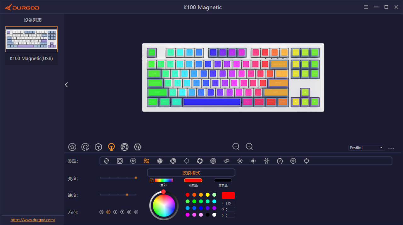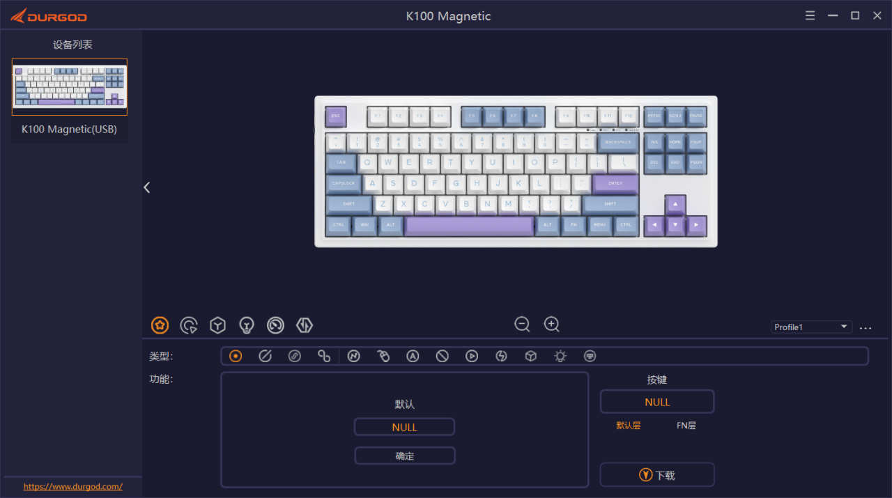 可以通过杜伽驱动实现连续快速触发的“物理外挂”功能,如自定义键程、动态键程、两层按键层切换等,触发键程稳定准确。