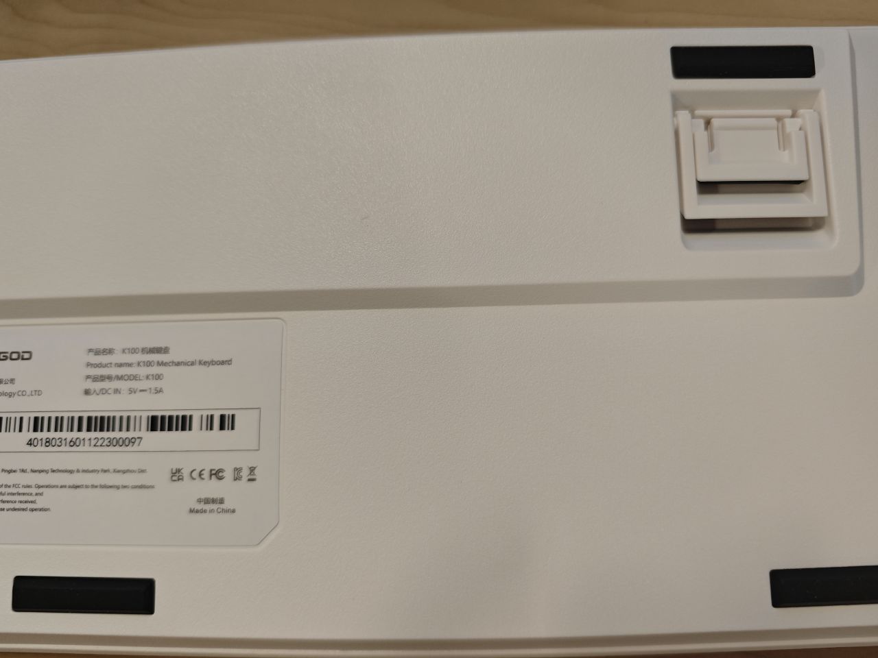 整个键盘外壳都是白色的,背板的脚撑采用两段式结构。