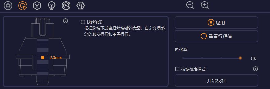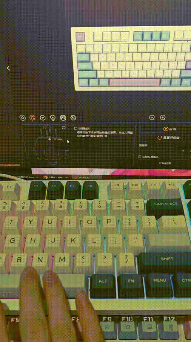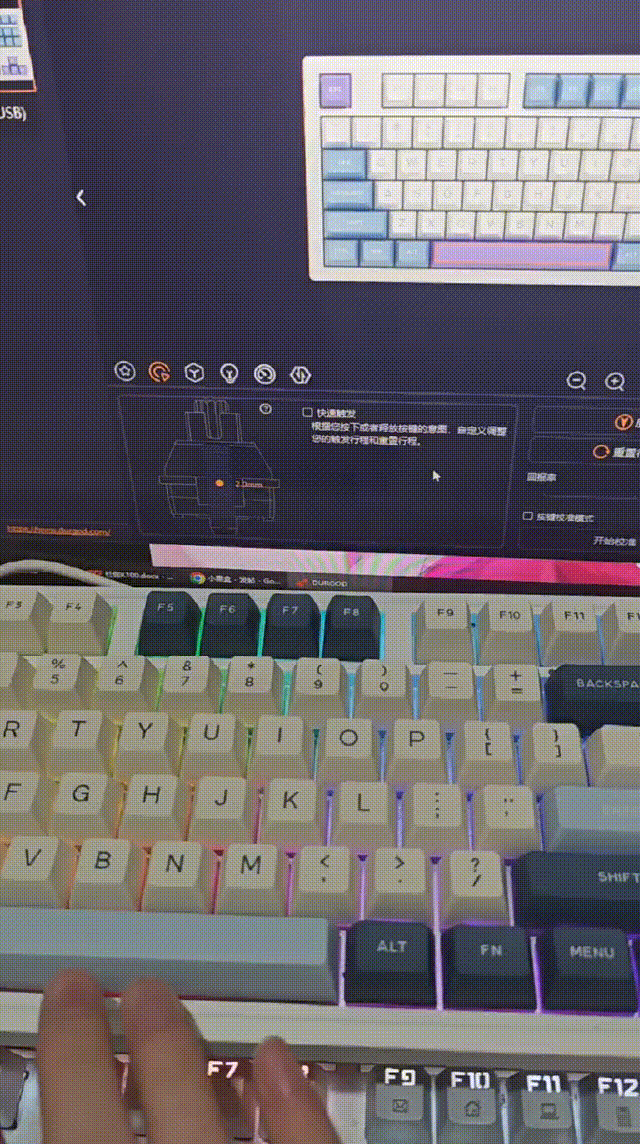 6.轴体允许玩家在0.4mm-4mm的键程之间自动调整触发距离(杜伽驱动软件调节触发距离)