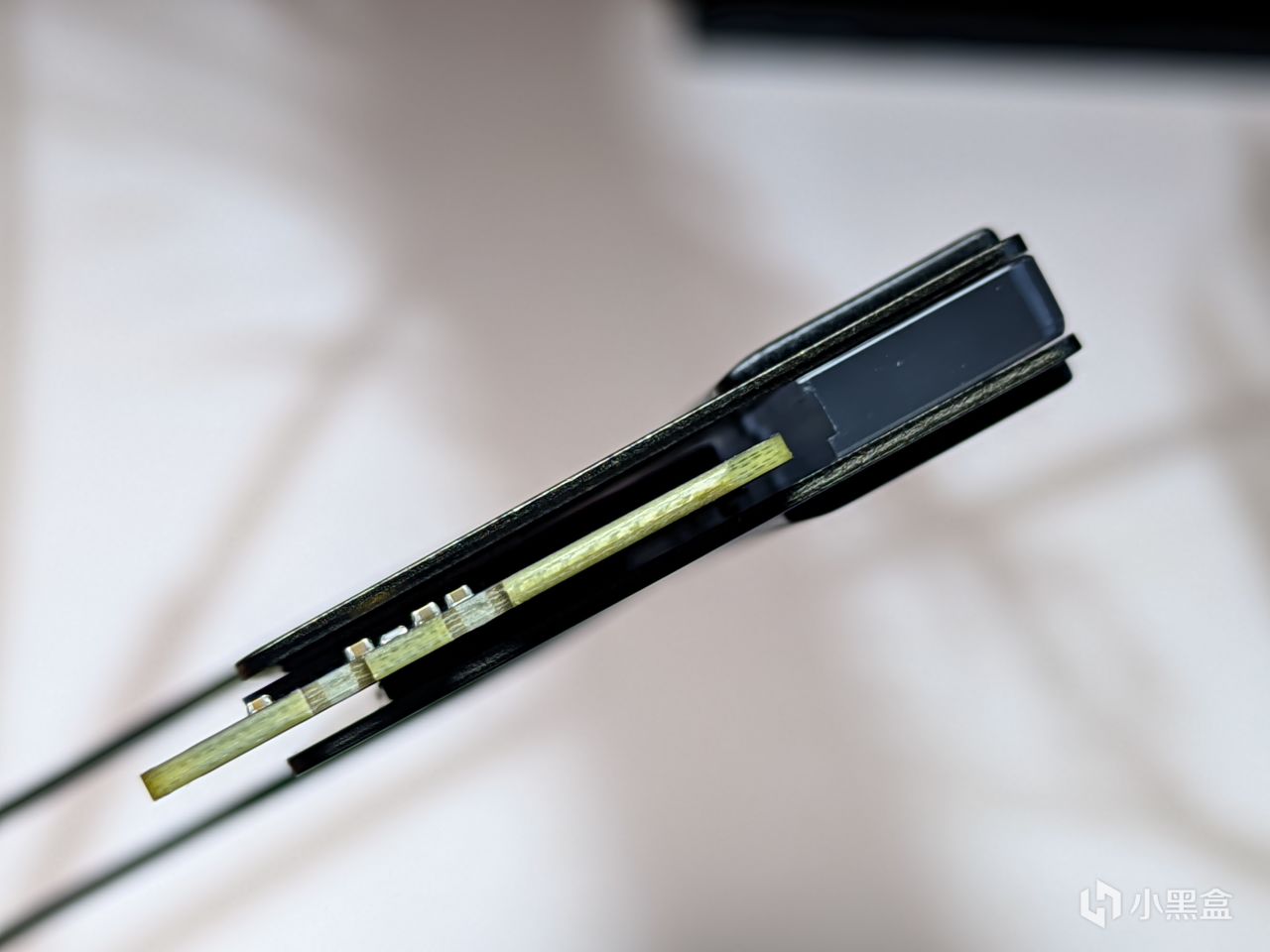 从侧面可以看出,采用的是三明治的夹片工艺,配合一个高透明度的导光条,颜值看着还不错,但是从侧面可看不出什么颗粒信息之类的,所以~保修再见!