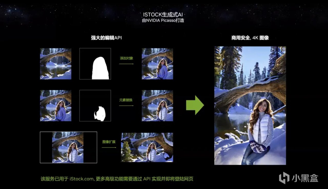 ▲由NVIDIA picasso 打造的强大的ISTOCK生成式A拥有非常强大的编辑功能,在ISTOCK的图片上添加内容,无版权问题,还可轻松扩展图像以适应不同的媒体。