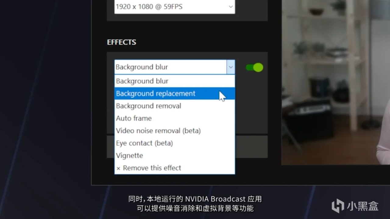 ▲而RTX GPU则可在同时使用NVIDIA Broadcast应用提供噪音消除和虚拟背景等功能或提供PC端的AI加速。