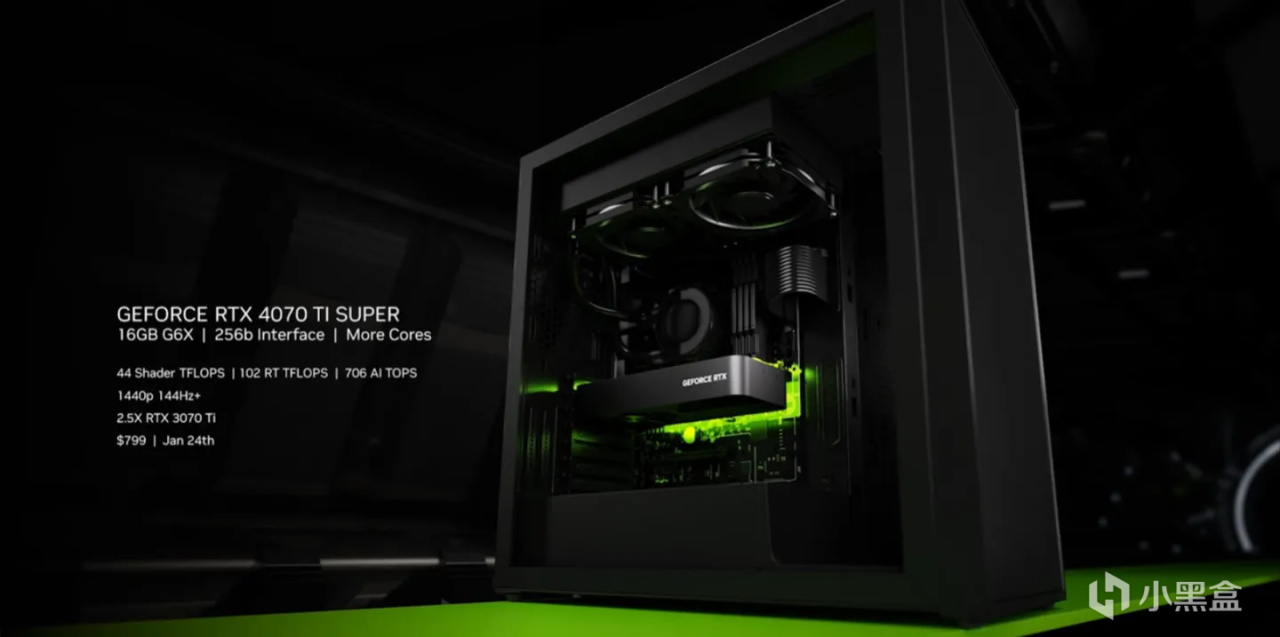 ▲NVIDIA GeForce RTX 4070 Ti Super显卡将于2024年1月24日发售,它的显存位宽增至256位,可以非常好的满足2K高刷显示器对游戏帧率的需求,在4K分辨率下仍有一战之力,其售价为799美元。