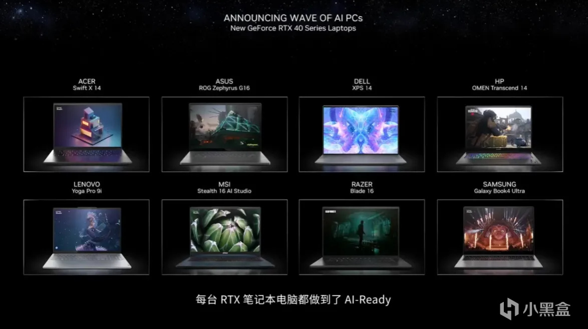 ▲最后,NVIDIA还发布了多款搭载RTX 40系GPU的笔记本电脑,每一款都做到了AI-Ready,可以说,AI离我们是越来越近了,这里也希望我能够获得全新笔记本的测试机会。