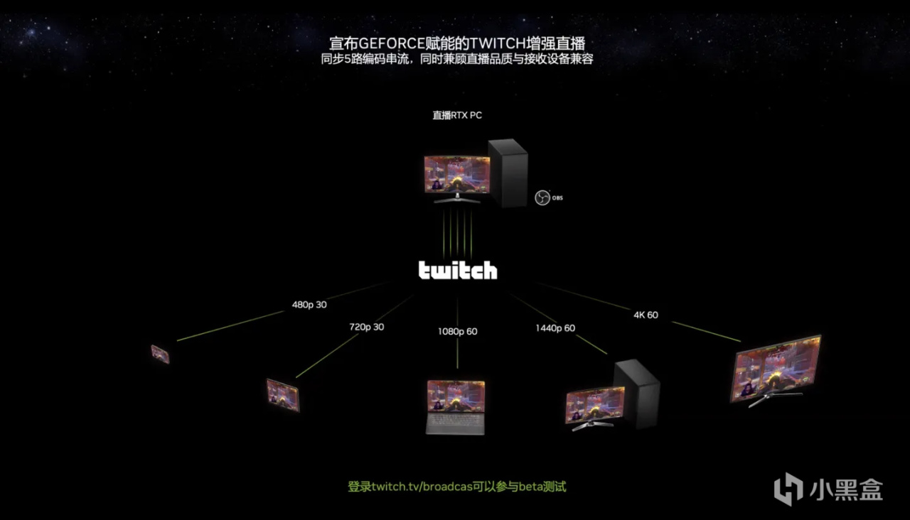 ▲而GeForce赋能的TWITCH增强直播,可同时提供5路编码串流,针对接收端适配,让直播作者无需再为观看者设备进行画质方面的妥协,这项技术已经开始BETA 测试,相信在未来,国内的直播平台上也会有类似的技术支持。