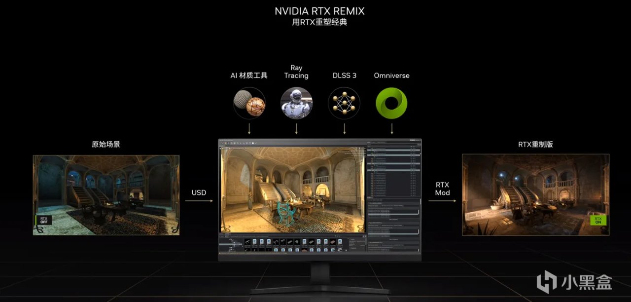 ▲在RTX 40系显卡首发时,黄仁勋先生便十分自豪的为大家介绍了NVIDIA RTX REMIX技术,而这项技术将于今年1月22日正式开始公测,这里我再为大家介绍一下RTX REMIX技术。
