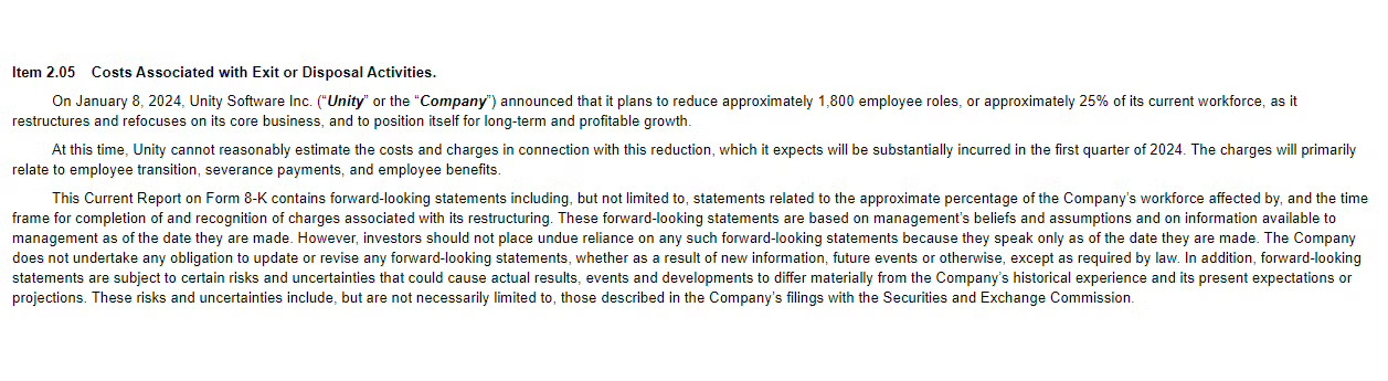 Unity近日提交的一份監管文件披露,該公司計劃在三月底前裁員1,800人,約佔員工總數的25%。這一決策旨在重組公司並集中優勢資源於核心業務,爲長期的盈利增長鋪平道路。