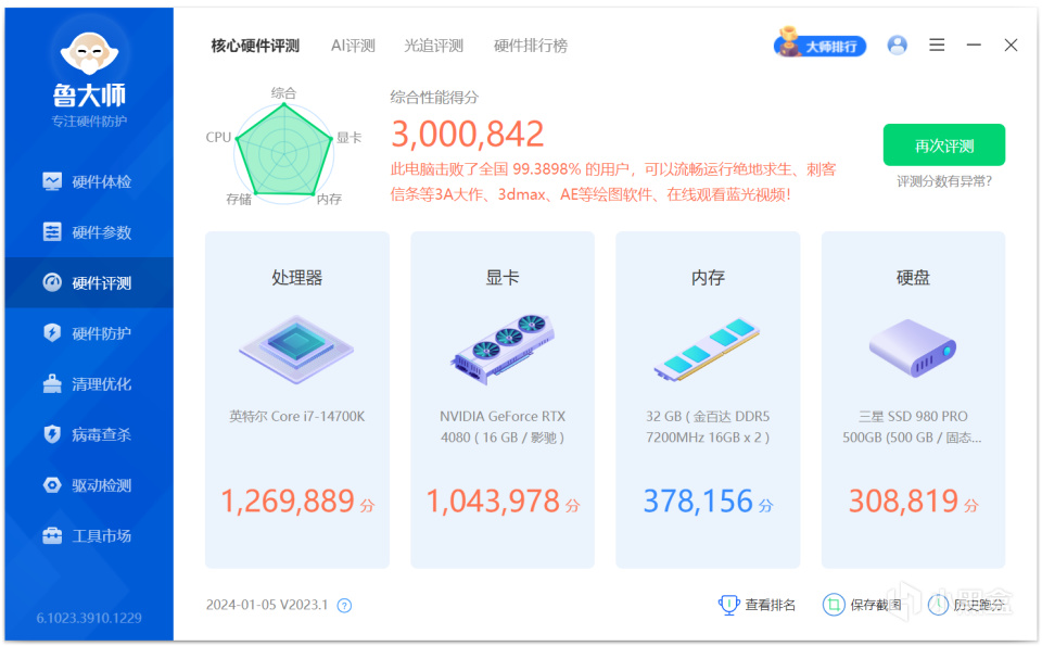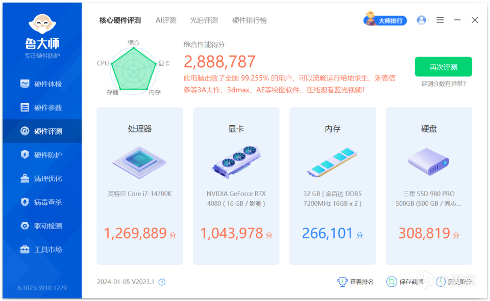 鲁大师内存得分为266101分。