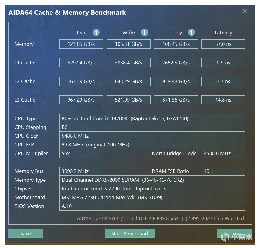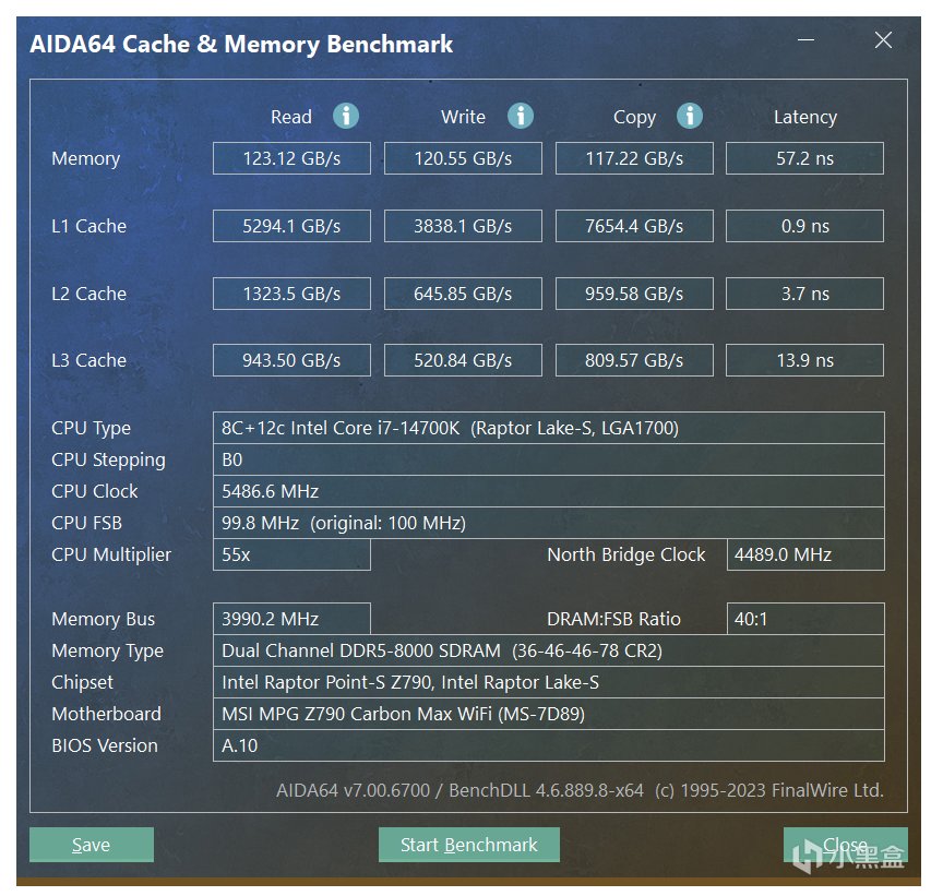 开启该功能后,在同样的频率时序下,AIDA64成绩有了大幅度提高: