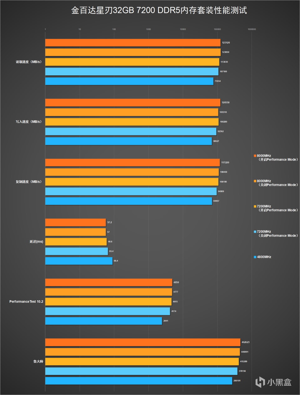 接着看看金百达星刃7200 DDR5内存的默认性能,未开启XMP,在默认4800MHz测试: