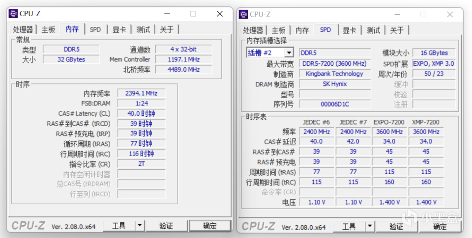通过CPU-Z了解到颗粒的制造商为SK海力士。