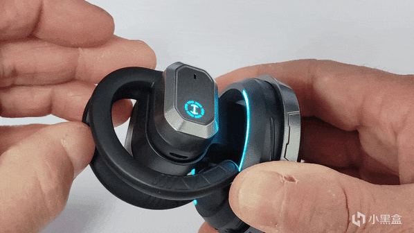 耳机的设计同样加入了电竞元素,正面的RGB灯效确实漂亮,同样具有非常强的品牌辨识度。