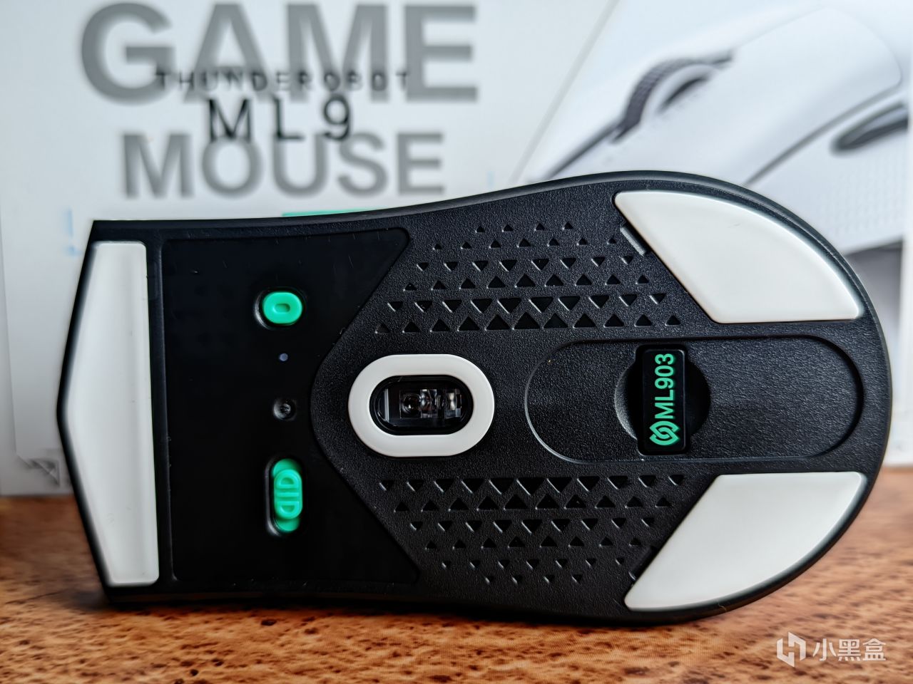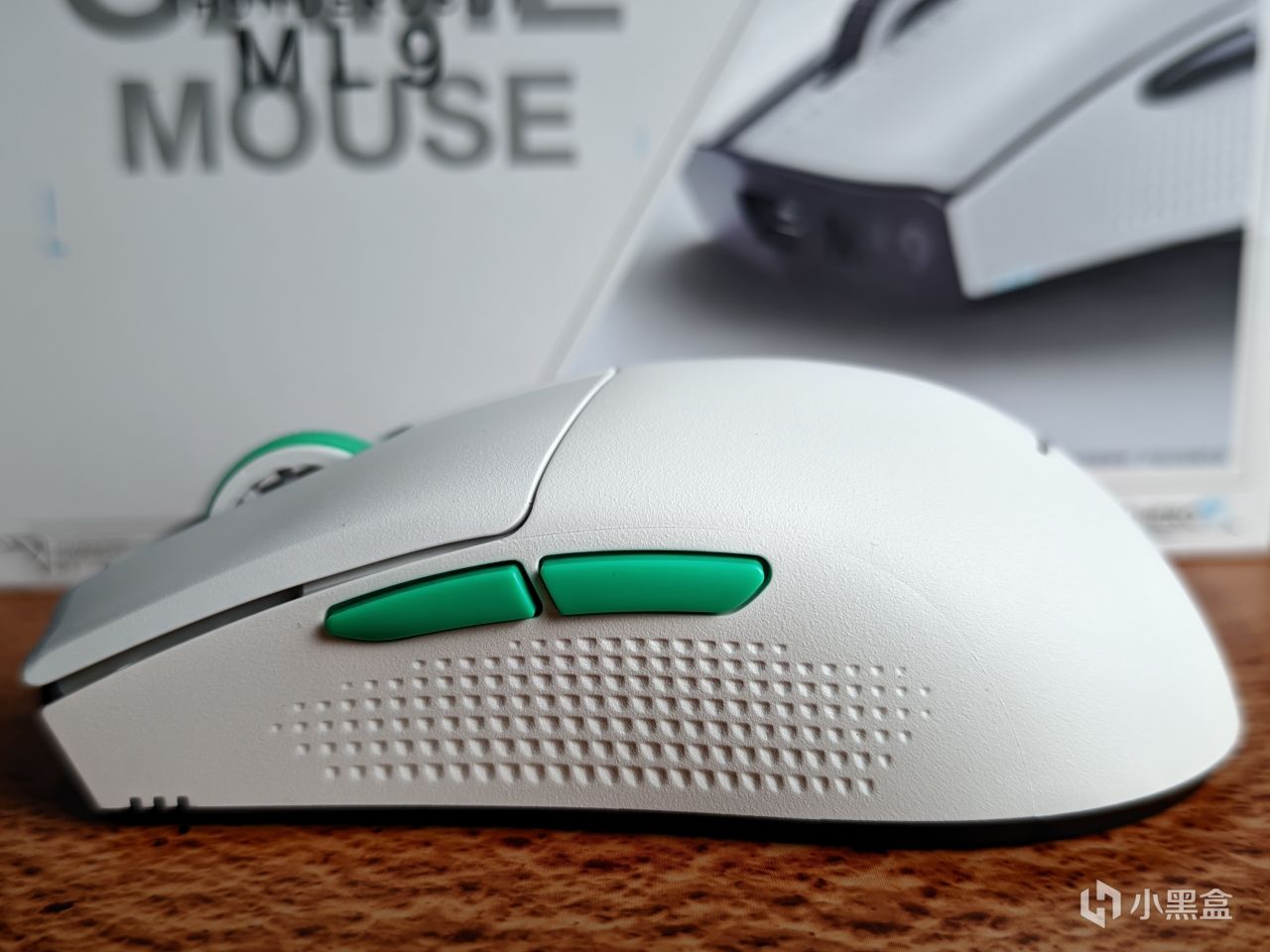 与很多鼠标一样,ML903星闪也是配备了两颗可自定义侧键,其颜色设置成了绿色,不同于标准版的黑色,可以做版本之间的区分,同时底部的三个小格则是电量灯,可以看出电量的使用情况,这款鼠标还蛮耐用的,600毫安的电池在使用了半个月之后,依然还有电,如果外出办公,带它很合适,侧边做了防滑设计,使用时基本没有出现鼠标飞出手掌的事情,即使是手上带水,也可以正常持握,手汗老哥福音啊,只可惜鼠标为白色设计,如果是汗水老哥还是贴上贴纸吧,以防发黄。