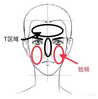 混油皮肤:T区冒油,脸颊两侧无明显感觉