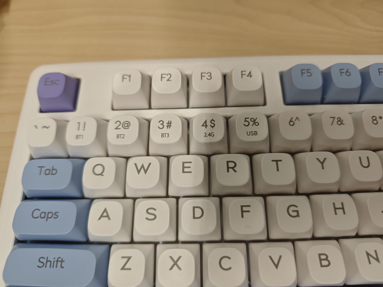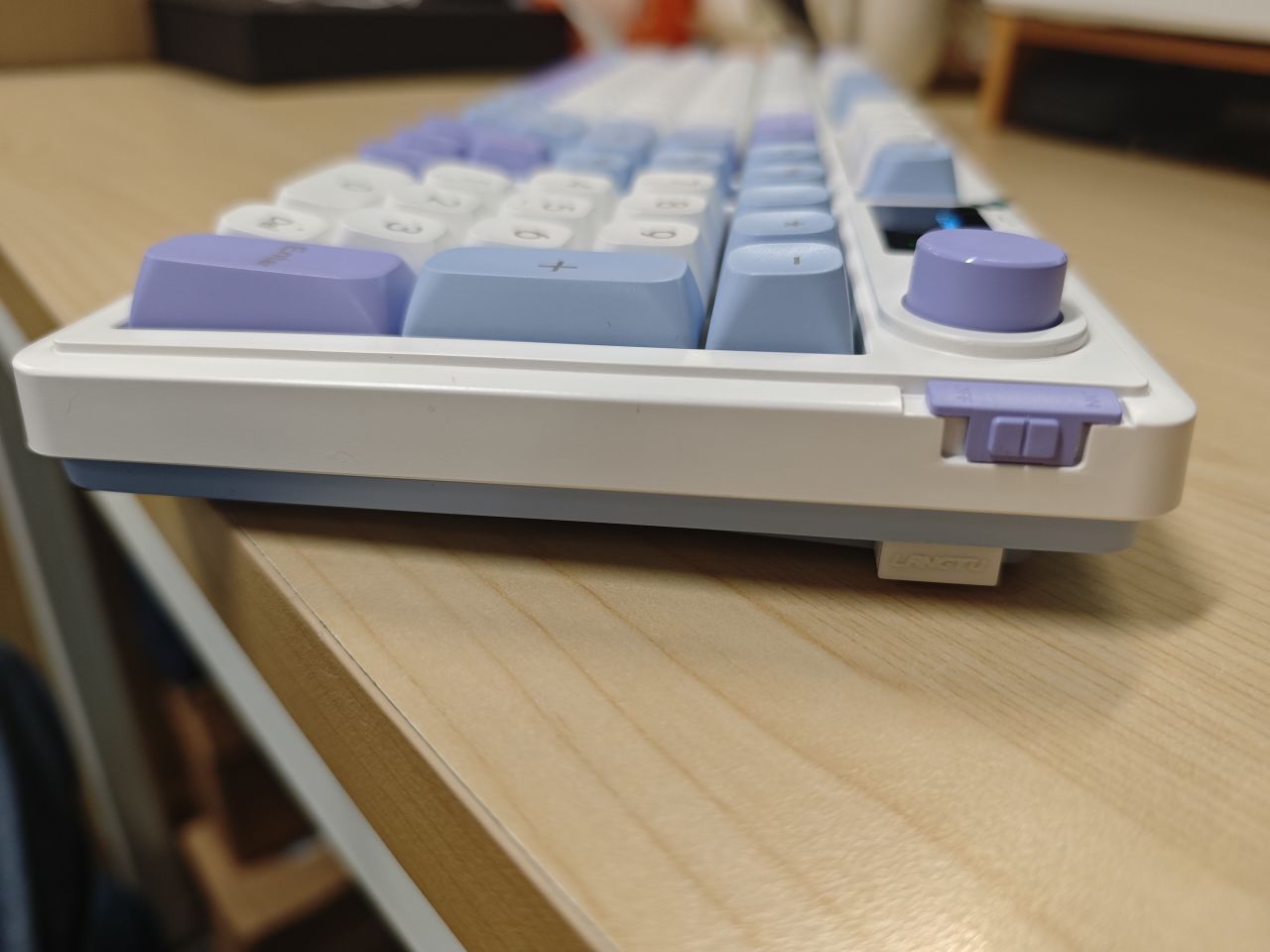 鍵盤右側有個三模切換開關,底下放着2.4G結構器。