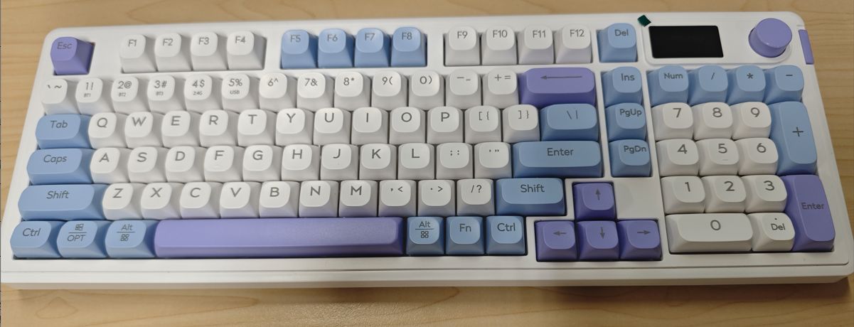 鍵盤右上角是顯示屏和多功能旋鈕。時尚顯示屏與鍵盤相結合,桌面氛圍感大幅度提升。獨立圓形音量旋鈕設計,快速調整音量大小,輕按旋鈕靜音or開啓。