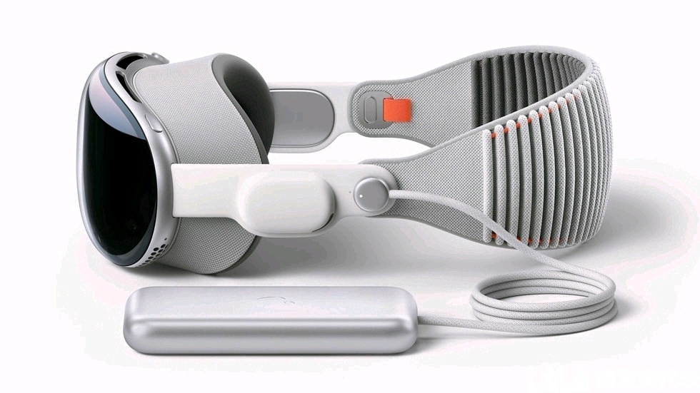 Vision Pro 看起来像一副滑雪镜,通过眼睛、手势和语音控制。该头显有一个玻璃前面板和一个铝制框架,包含传感器、摄像头、显示屏和用风扇冷却的计算组件。耳机面罩和表带采用布衬和模块化设计,以及轻量化设计,苹果表示它们可以弯曲以适应各种脸型和头型。带螺纹的头带可以更换不同尺寸和款式,苹果跟蔡司合作,生产的处方镜片可以磁性地附着在显示屏上,便于近视人士使用头显。