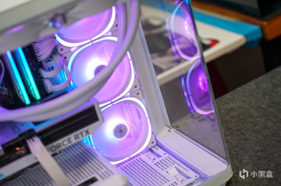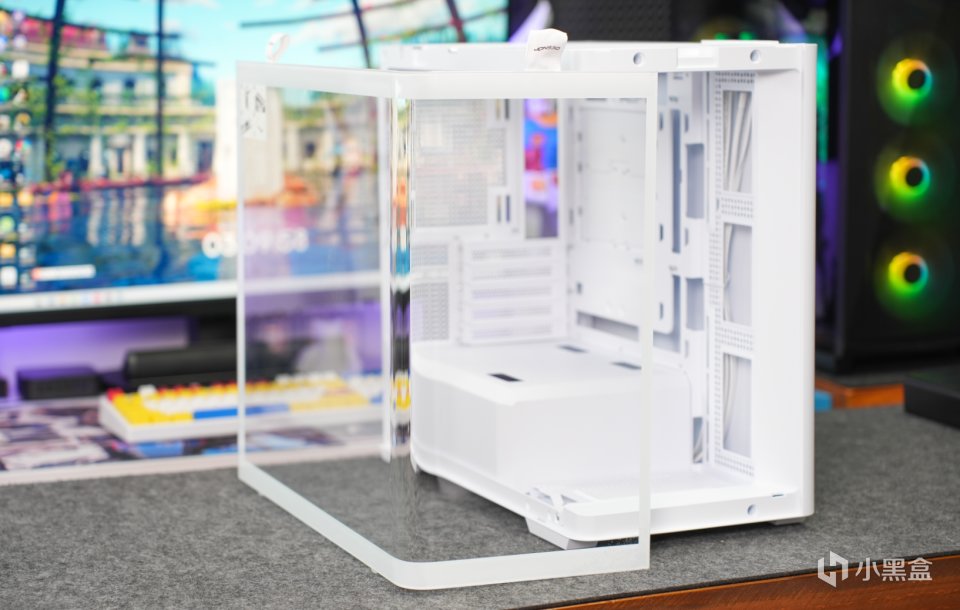 打开包装,最吸引人的地方就是一整块的曲面钢化玻璃,非常巧妙的安装在白色的机箱上,带来非常清爽的双面侧透设计。