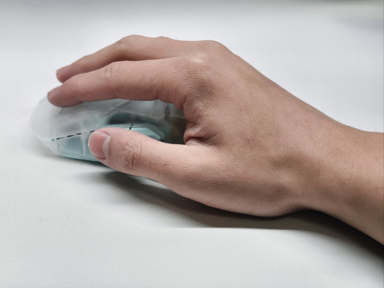 鼠标背部隆起的最高点对掌心的支撑性很不错,很舒适。虽然与vt9pro样式看起来相同,但是并没有同比缩放,是进行重新的调整与打磨的。对于抓握,趴握,131握法,121握法都是支持以及友好的,整体的握持手感十分舒适。