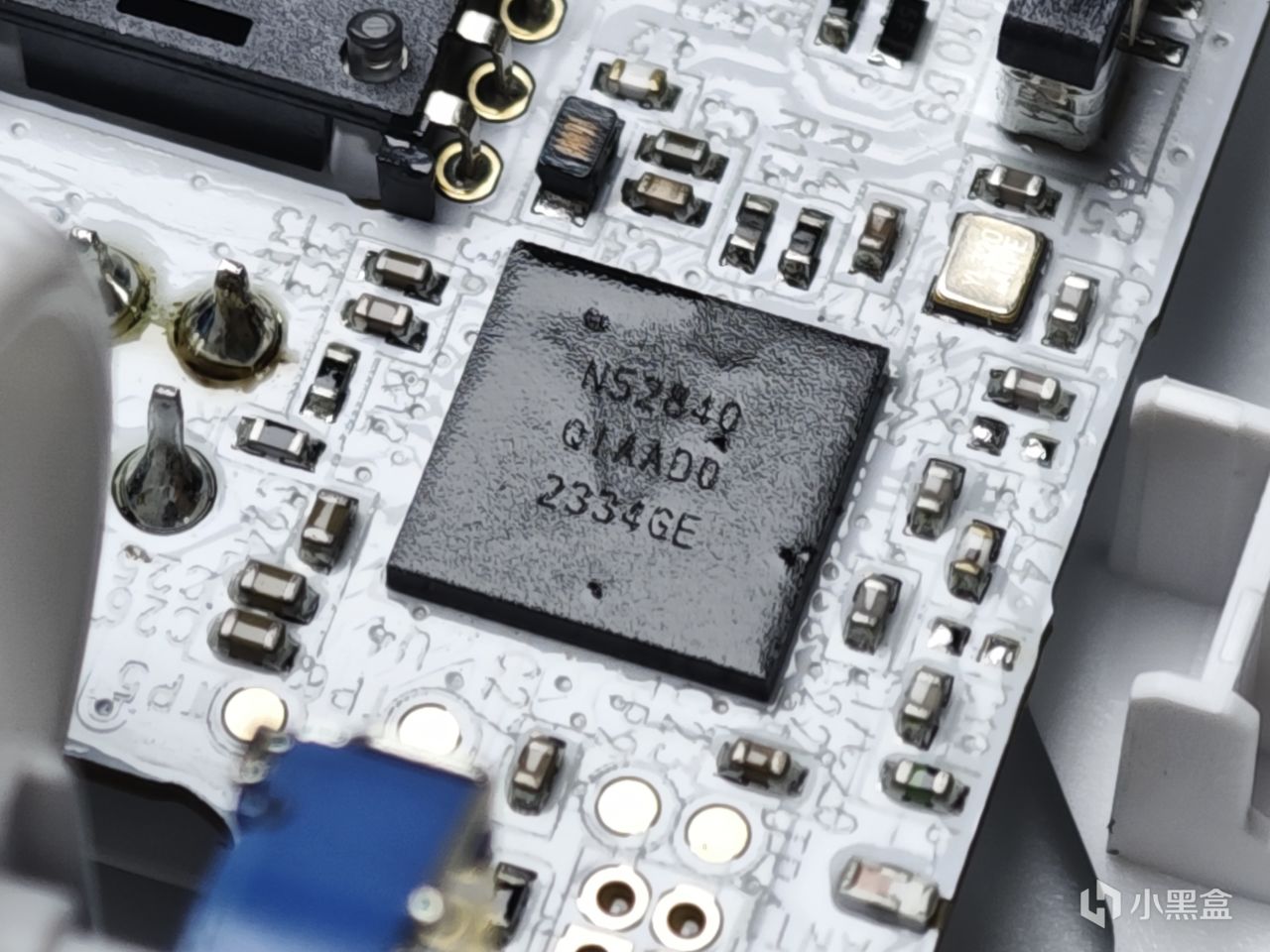主控IC芯片可以看到为诺迪克的52840芯片,算得上目前最顶尖的一批了,可以在很多鼠标上看到,不仅是因为其优良的能耗比,更重要的还是上限。不仅能解锁1Khz回报率的上限从而达到4Khz回报率,还能在后续升级成无线8Khz回报率,不过也仅限2.4G模式下有这待遇,有线模式最高仅有1Khz回报率可选。