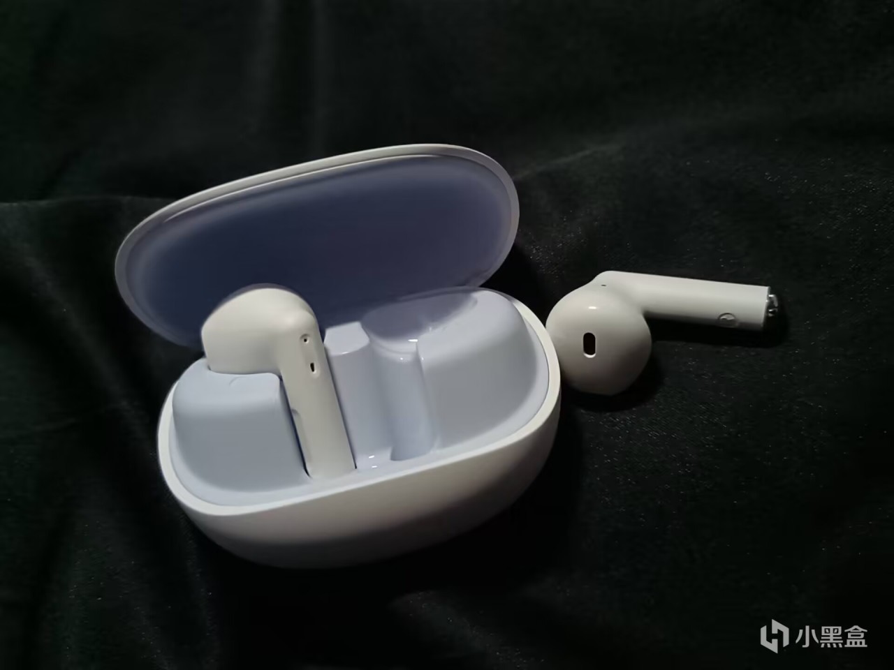 首先就是耳机充电仓了,整体来说也算是比较小巧的那种,椭圆形,很圆润,下方的充电接口位置也是做了一个保护处理,一旁是一个指示灯,这款灵野T2也是做了两种颜色的,充电仓外部都是一样的,打开之后就可以看到不同的部分了,我这款是青春蓝色,上盖和下面主体连接部位还是比较牢固的,对应盛放耳机的地方也是做了左右耳的区分。