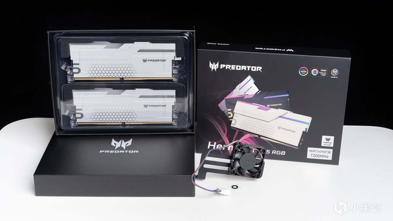 黑色内盒里面不但有透明PVC模子包裹内存,而且底下还有一层缓震材料,仪式感和保护性都相当不错。除此之外,内存还提供了一个4CMX4CM的定制内存风扇,能提供4.72CM风量直吹,在运行高频时可更快导出热量。