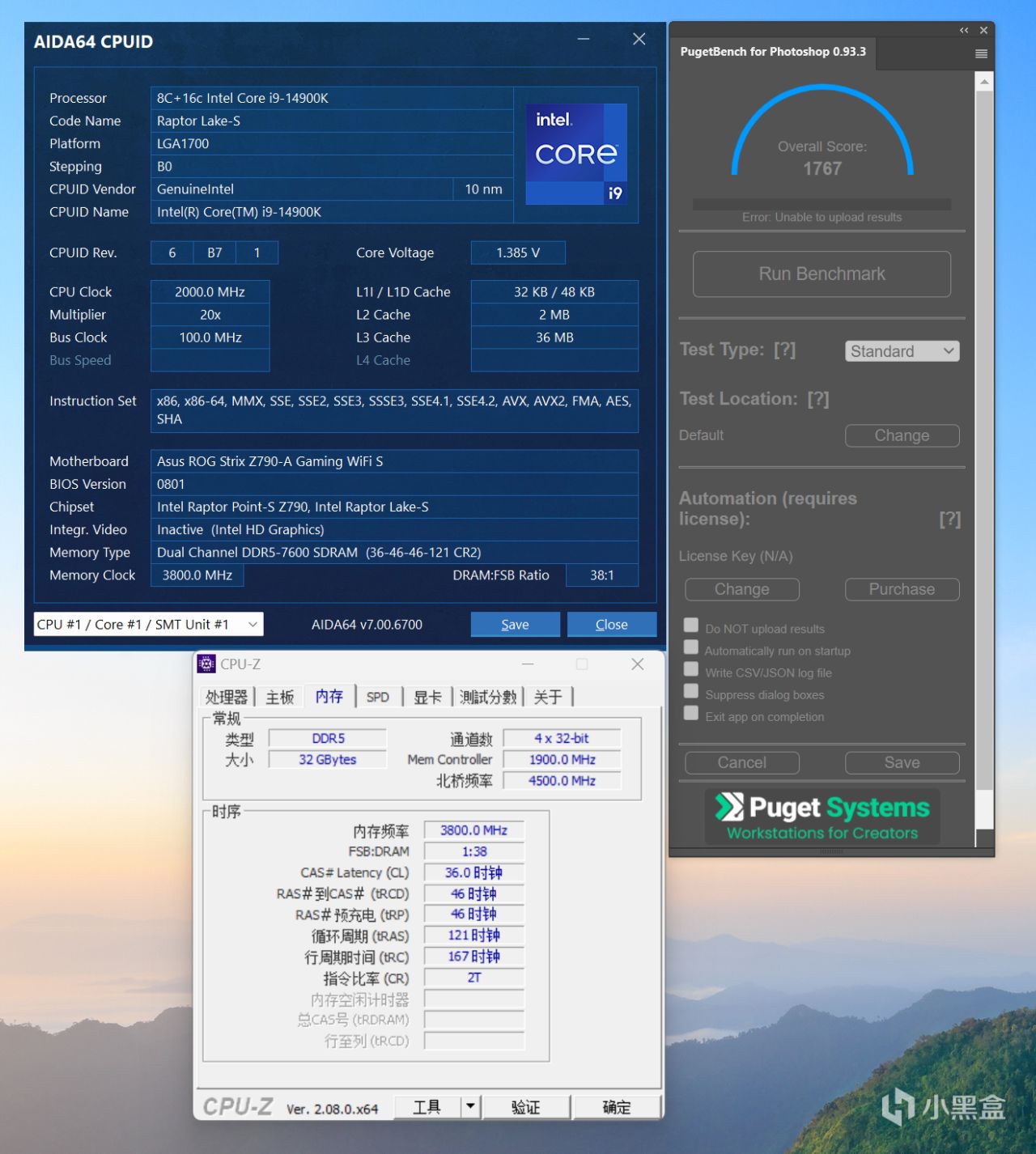 PugetBench for Photoshop基准,(2x16GB)冰刃Hermes RGB DDR5 7600C36-46-46-121 XMP设定,得分1767