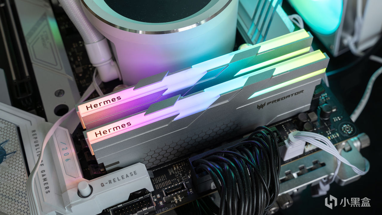 AURA Sync调控下,宏碁掠夺者的冰刃Hermes RGB DDR5 7200 48GB彩虹RGB灯效