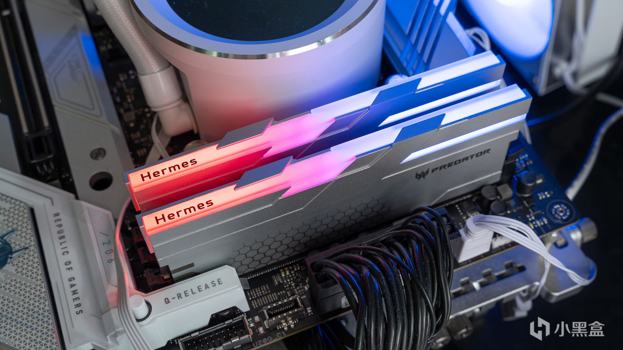 AURA Sync调控下,宏碁掠夺者的冰刃Hermes RGB DDR5 7200 48GB红蓝渐变恒亮灯效
