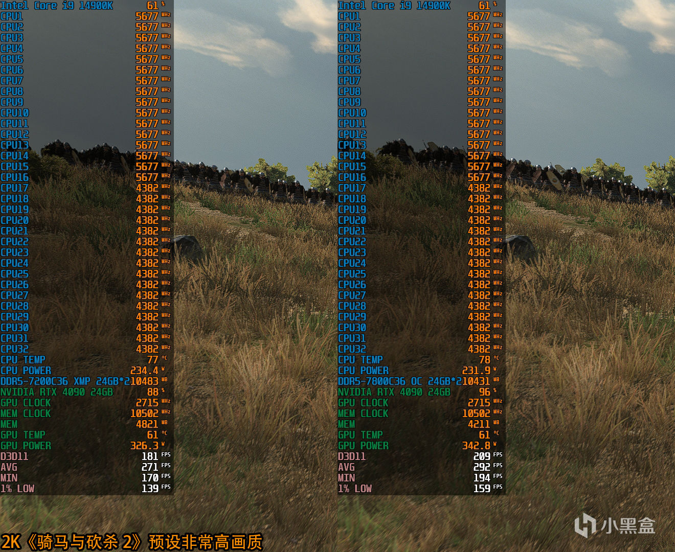 (2x24GB)冰刃Hermes RGB DDR5 7800C36-46-46-58 OC设定平均帧数为292fps(提升7.7%),1%LOW帧为159fps(提升14%)