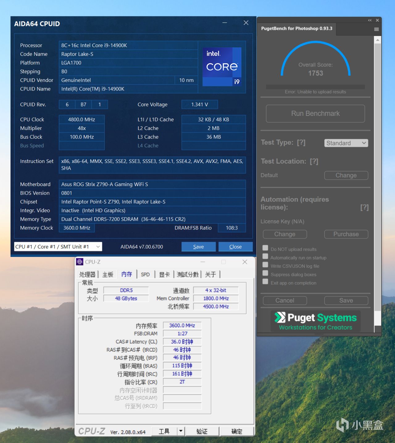 PugetBench for Photoshop基准,(2x24GB)冰刃Hermes RGB DDR5 7200C36-46-46-115 XMP设定,得分1753