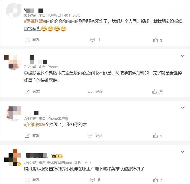 腾讯旗下《英雄联盟》《穿越火线》《英雄联盟手游》《地下城与勇士》《金铲铲之战》《和平精英》等游戏服务器崩溃,在线玩家全部掉线。