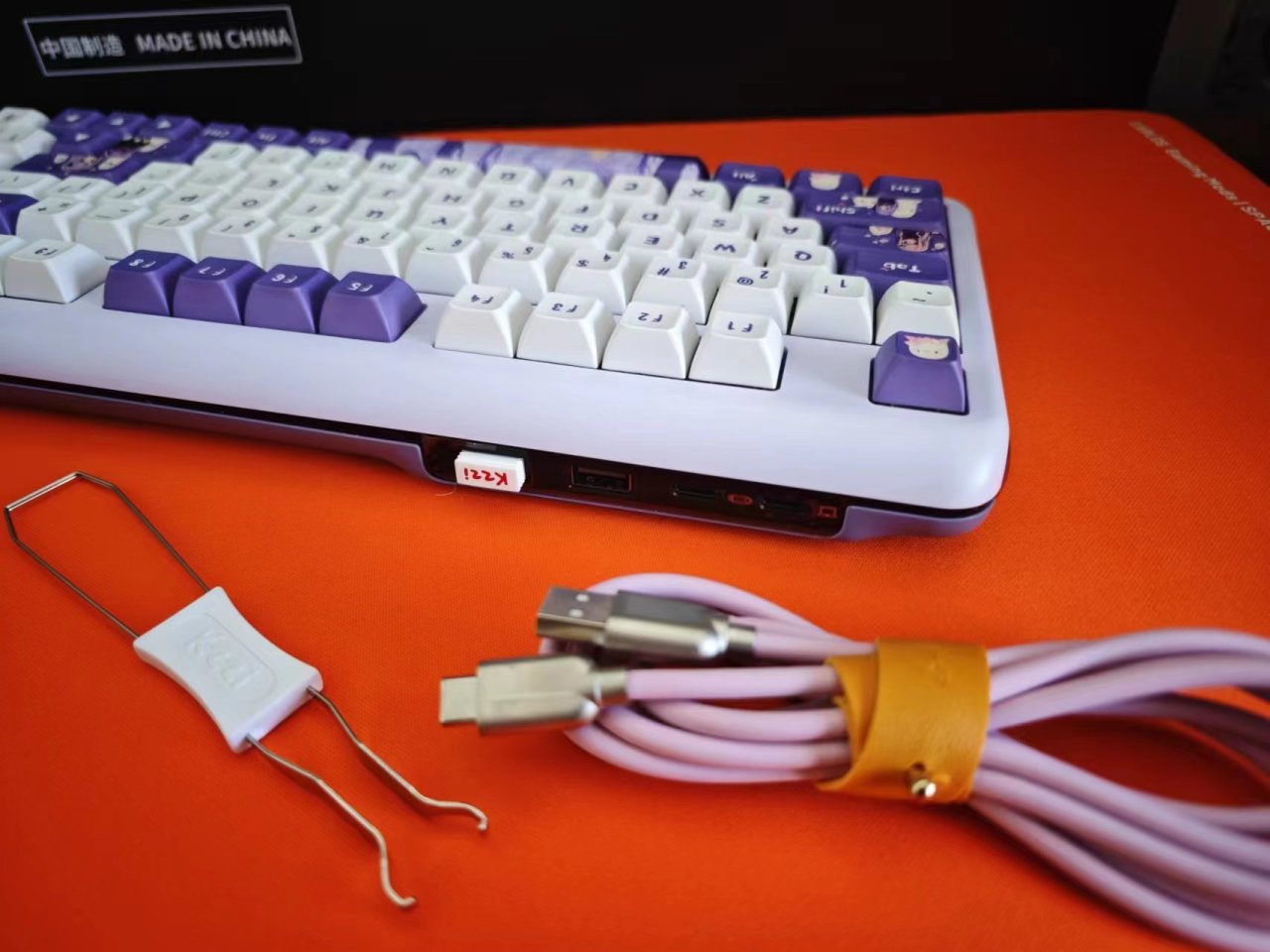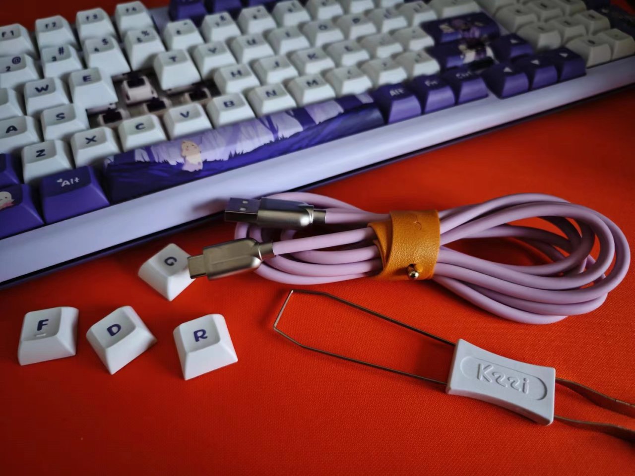 Z98青春版魔法森林的数据线值得拿出来单独写一段,粉色的数据线在外设产品中确实少见。虽然没有使用伞绳包裹,但是加厚橡胶包裹让整个数据线有一种粉嘟嘟的柔软感。全金属外壳的数据接头设计,比起常见的金属头+塑料壳设计更有质感。捆线带没有用主流的魔术贴,而是用了类皮革质感的材料,上面打孔用金属扣来固定,高级感拉满!