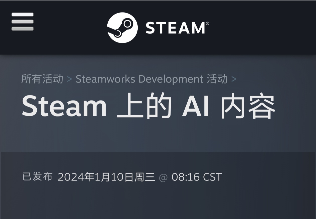 Valve在2024年1月10日宣布了一些针对使用AI技术的游戏的新政策,旨在允许发行使用AI技术的绝大部分游戏。