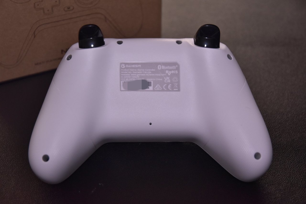 背面没有背键,仅有一个孔位用于重置手柄,插入卡针即可实现。